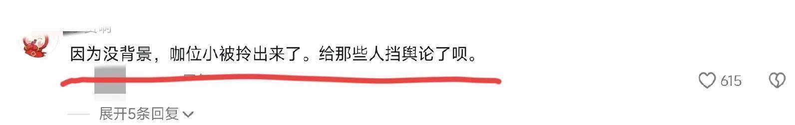 网友: 因为没背景,咖位小被拎出来了。给那些人挡舆论了呗。